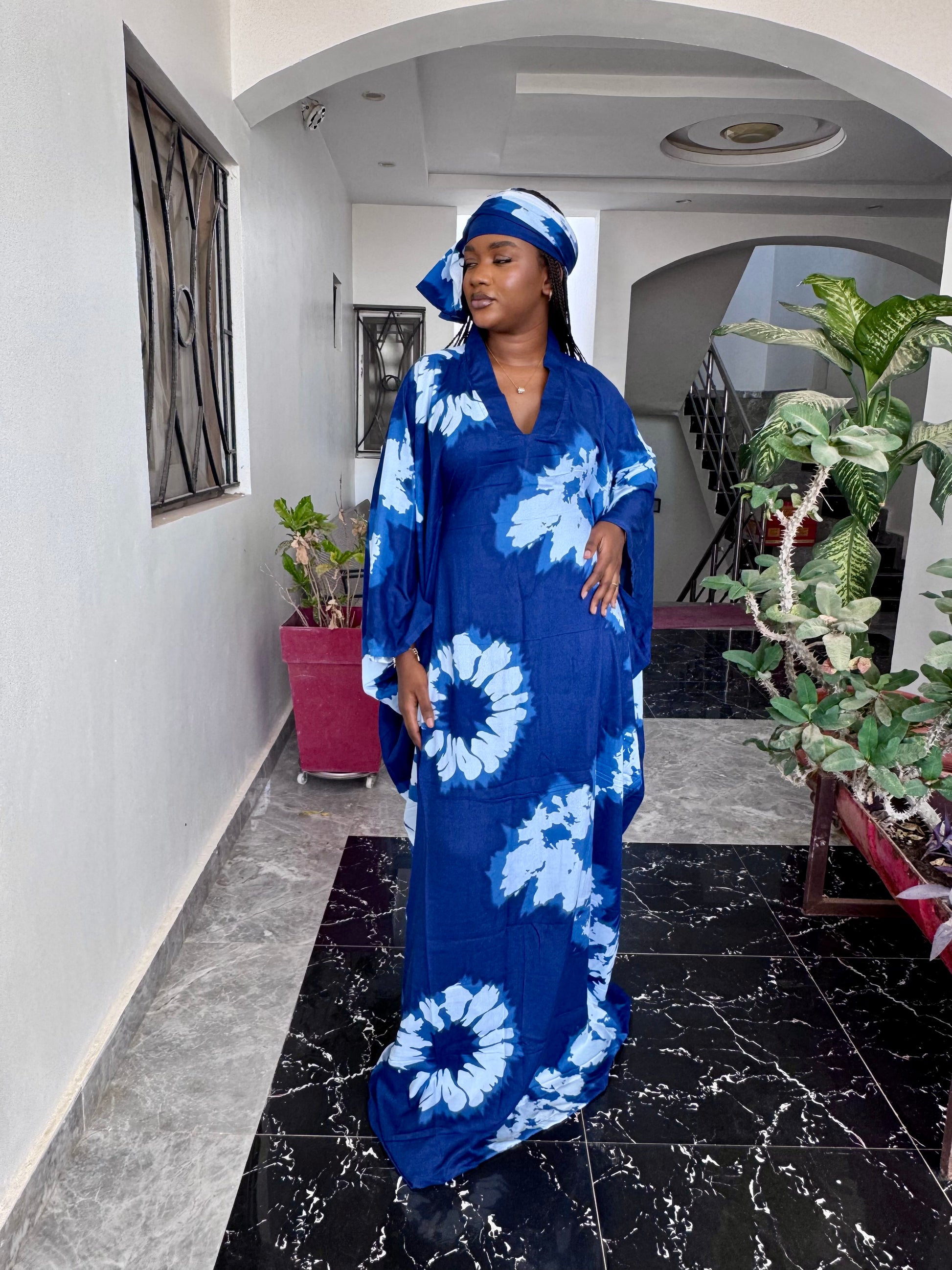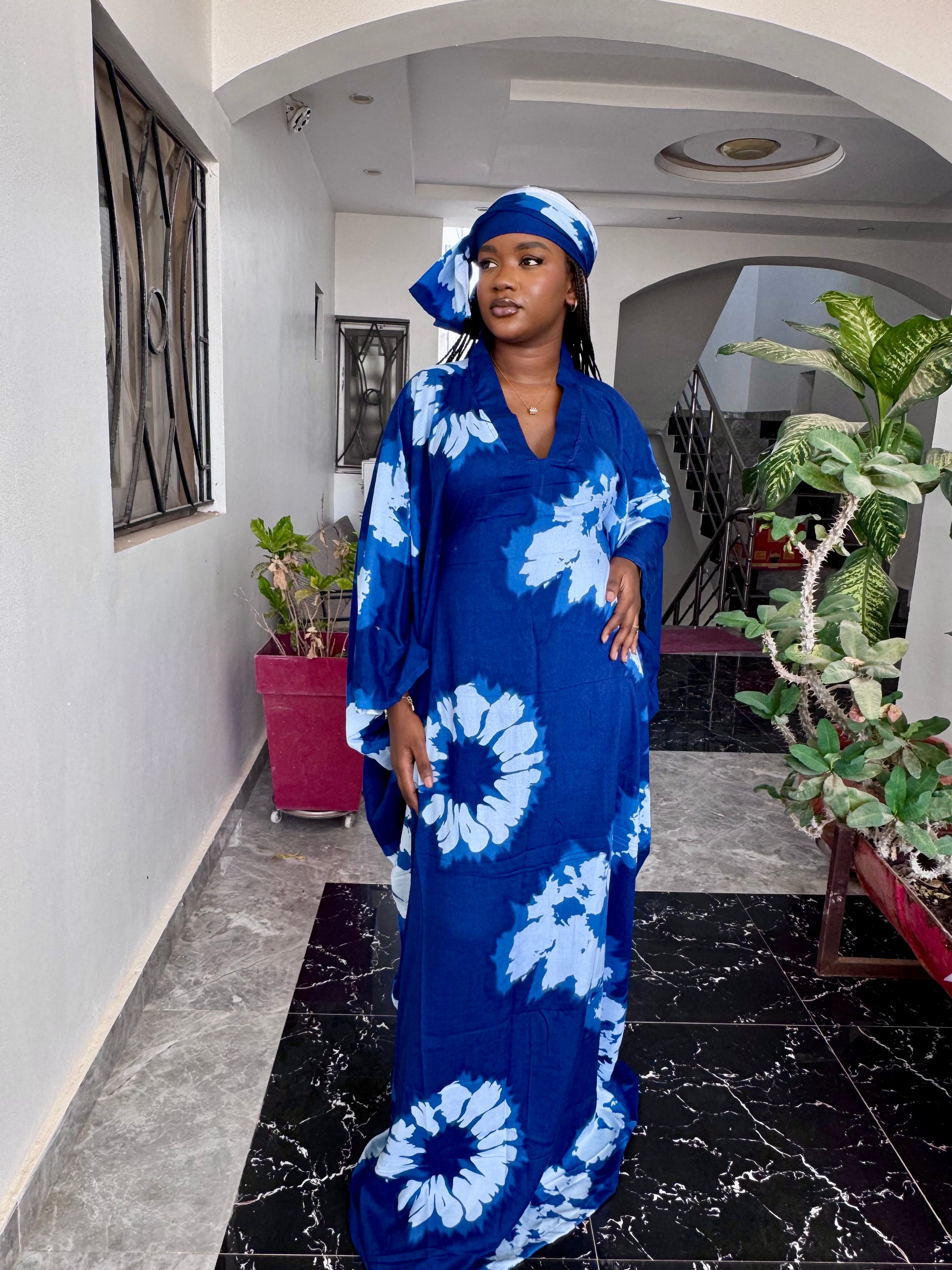 Élégant et fluide, ce boubou long incarne le parfait équilibre entre tradition et modernité. Confectionné dans un tissu teinté à la main .